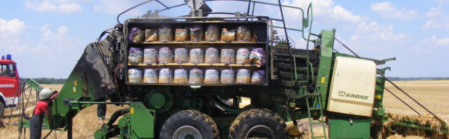 Kigyulladt és teljes terjedelmében égett egy bálázó gép 2017.07.08.-án, szombat délelőtt Ráckeve külterületén. A tűzoltók kiérkezése előtt a gépkezelője porral oltóval megkezdte a tűz oltását, de nem járt sikerrel. A ráckevei önkormányzati és a szigetszentmiklósi hivatásos tűzoltók két vízsugár segítségével oltották el a lángokat, majd hűtötték vissza a felforrósodott fém alkatrészeket. Foto: PMKI Szigetszentmiklós HTP
